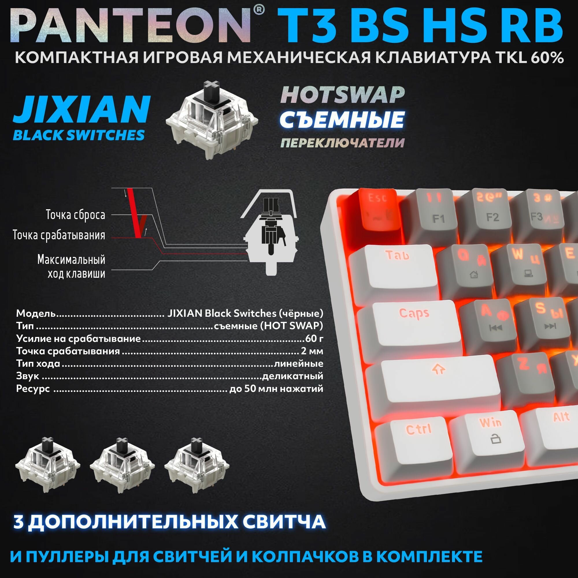 PANTEON T3 PRO BS HS RGB White (31) Механическая клавиатура (TKL 60%, подсветка LED RGB, Jixian Black, 61 кл, HotSwap, USB), цвет: белый (31)