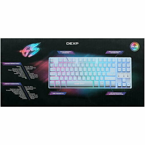Клавиатура проводная DEXP Glory TKL, мембранная, клавиш - 87, USB, белая