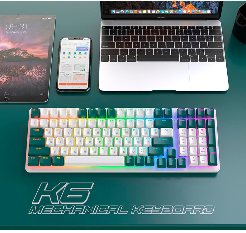 Ниже Вы можете прочитать отзывы на Игровая RGB беспроводная механическая клавиатура K6 Bluetooth, Серый/Зеленый, ознакомится с подробными характеристиками, посмотреть интересные обзоры и фотографии на Игровая RGB беспроводная механическая клавиатура K6 Bluetooth, Серый/Зеленый.