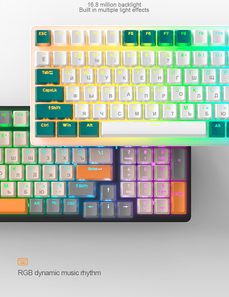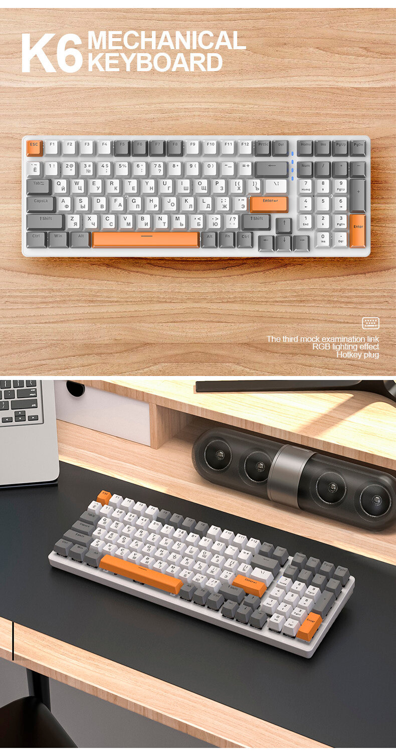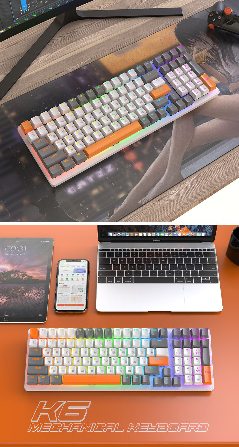 Игровая RGB беспроводная механическая клавиатура K6 Bluetooth, Серый/Оранжевый интересное: