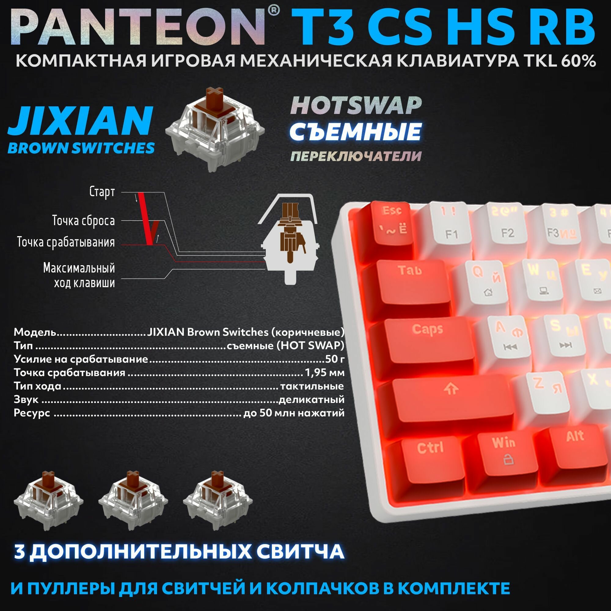 Купить PANTEON T3 CS HS RB White-Red (42) Механическая клавиатура ( Jixian Brown, 61 кл., HotSwap, USB)