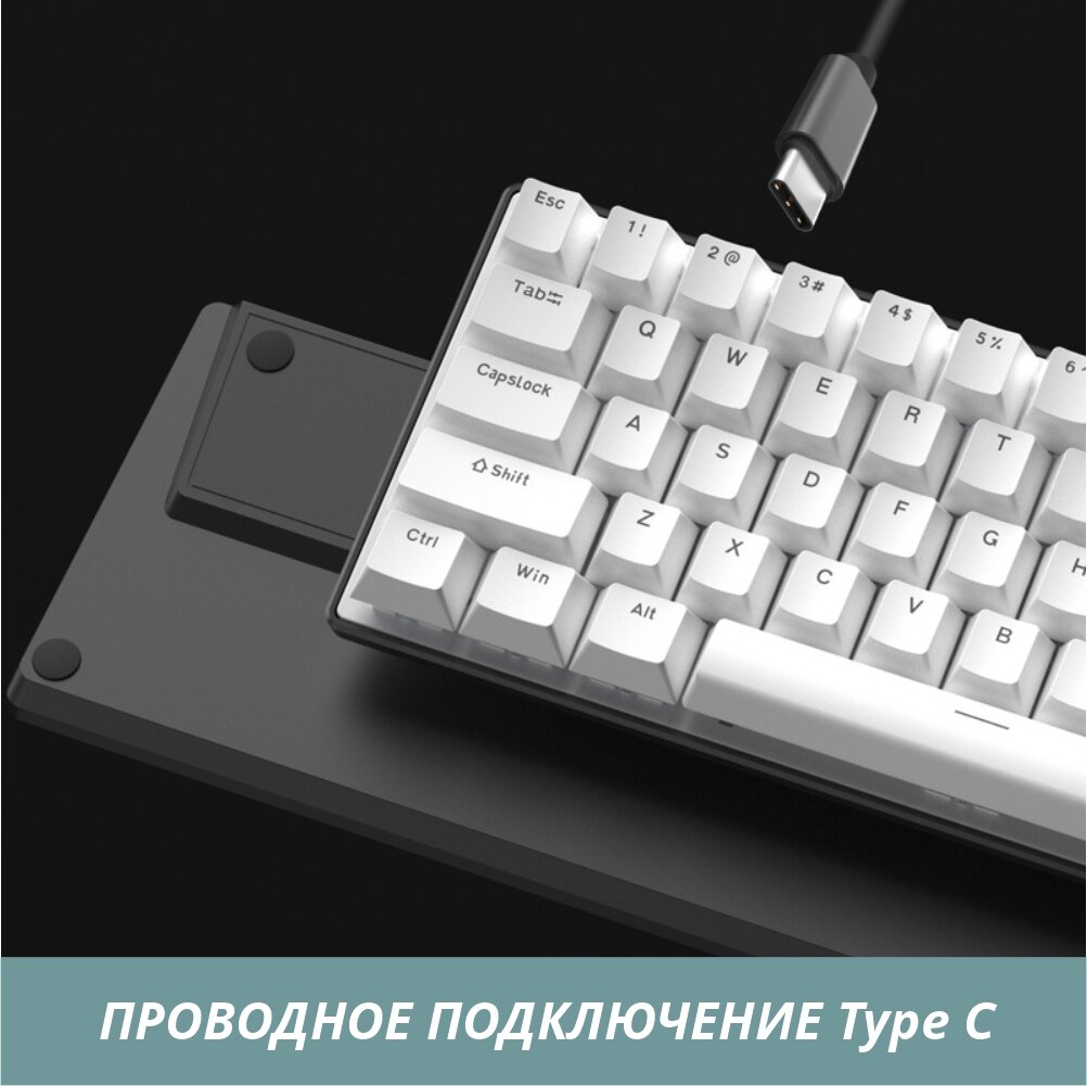 бело-жёлтая механическая клавиатура игровая Q68 RGB + комплект чёрных русско-английских PBT кейкапов интересное: