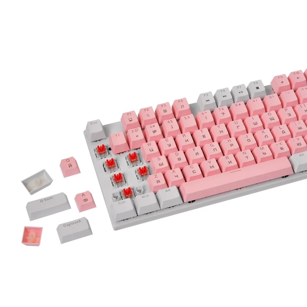 Клавиатура игровая проводная VOROTEX K104S Red Switch, русская раскладка (Белый,розовый)