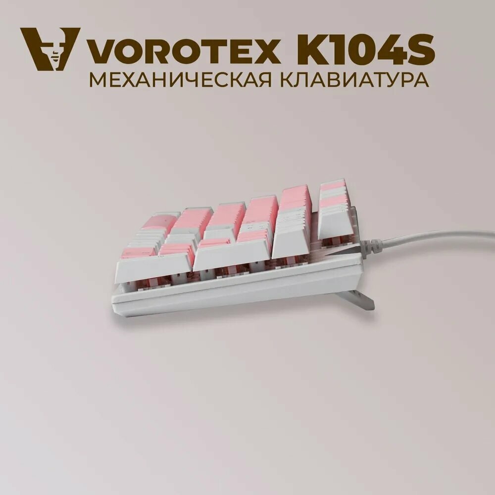 Клавиатура игровая проводная VOROTEX K104S Blue Switch, русская раскладка (Белый,розовый)