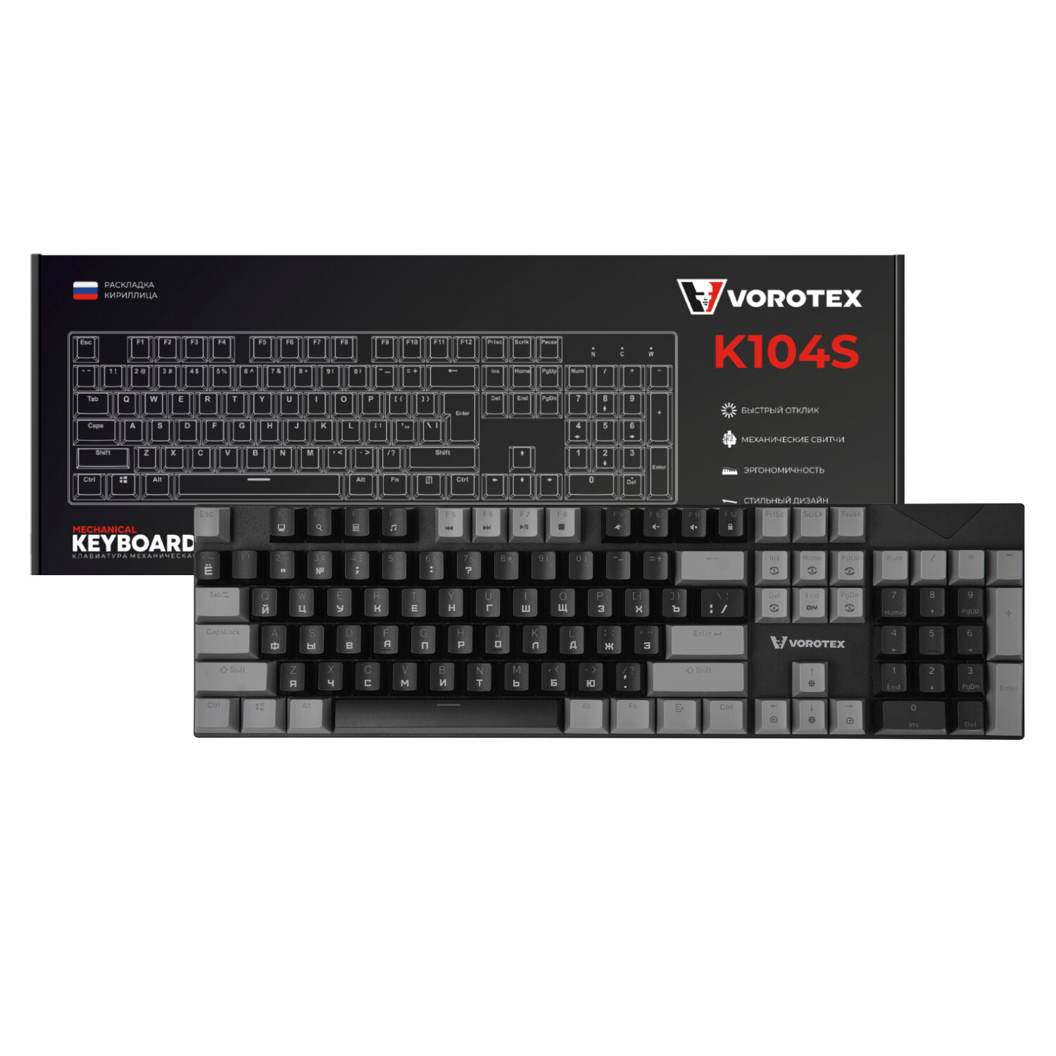 Купить Клавиатура игровая проводная VOROTEX K104S Red Switch, русская раскладка (Чёрный, серый)