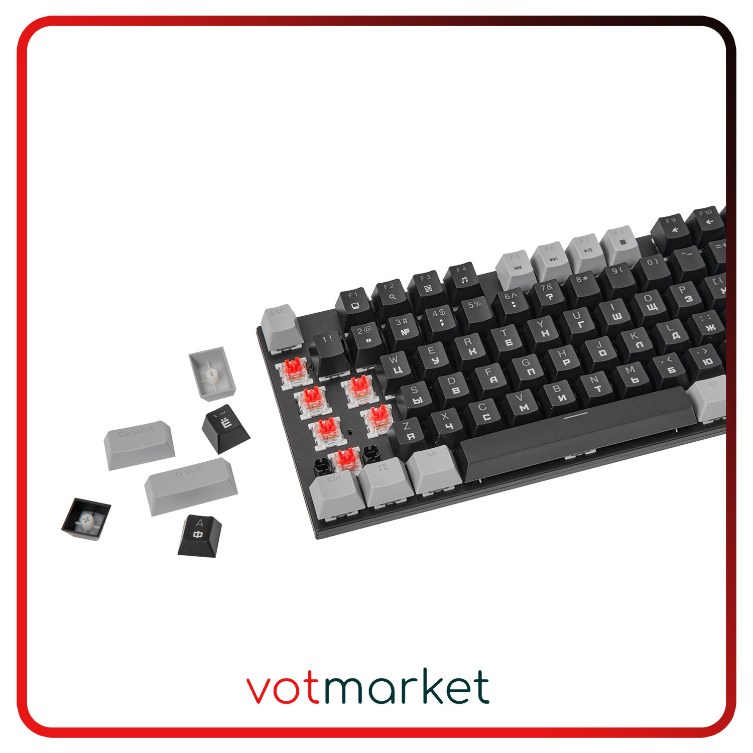 Клавиатура игровая проводная VOROTEX K104S Red Switch, русская раскладка (Серый, чёрный)