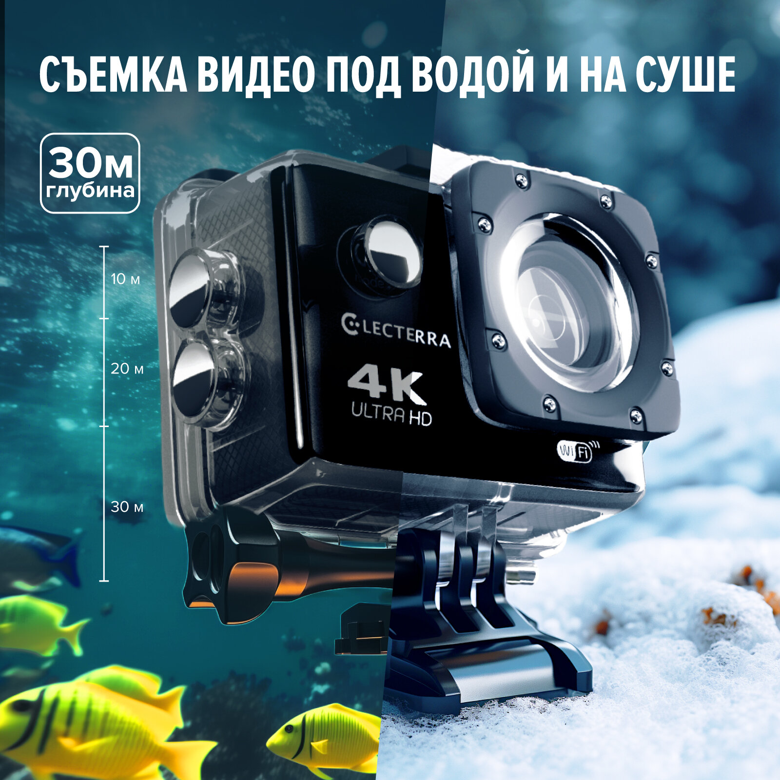 Экшн камера Electerra 4К 1080p Ultra HD. Водонепроницаемый кейс, набор креплений. Экшен камера, черная. Подарок на Новый Год интересное: