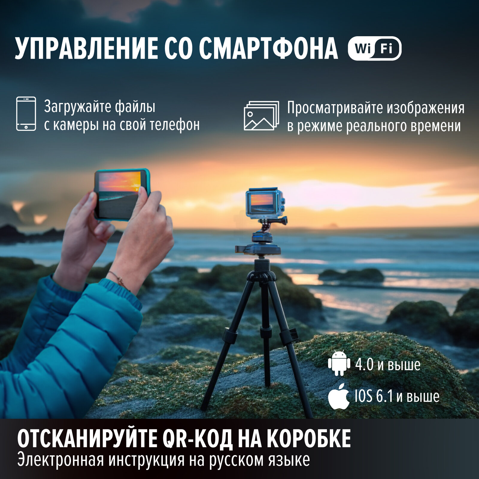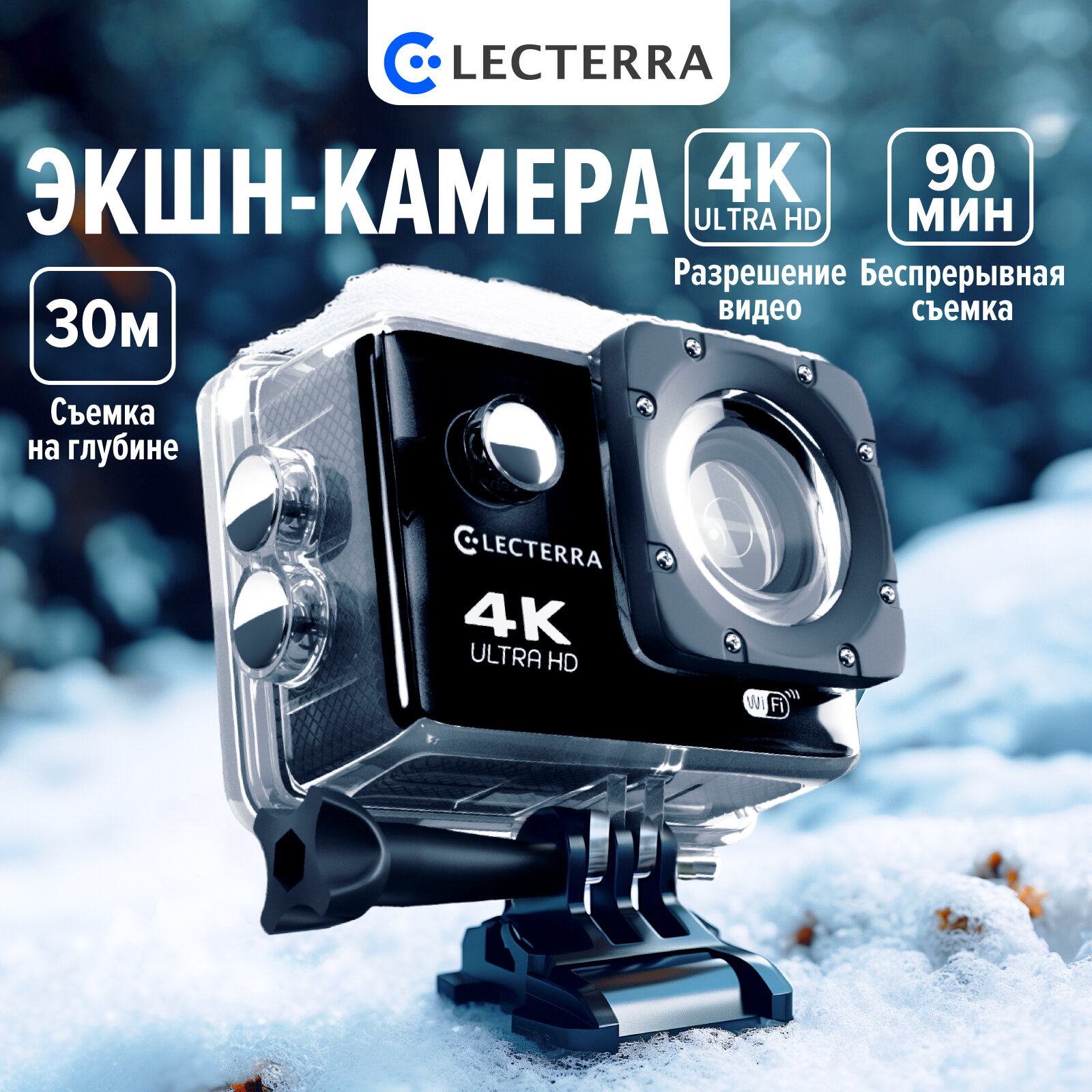 Купить Экшн камера Electerra 4К 1080p Ultra HD. Водонепроницаемый кейс, набор креплений. Экшен камера, черная. Подарок на Новый Год