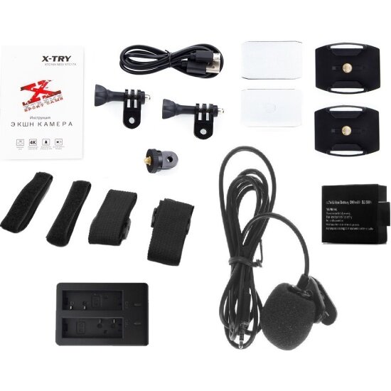 | Комплектация | водонепроницаемый бокс, переходник под штативный винт, крепеж-защелка, USB-кабель, микрофон, зарядное устройство на 2 АКБ, дополнительная АКБ, дополнительный набор аксессуаров и руководство пользователя/гарантийный талон |