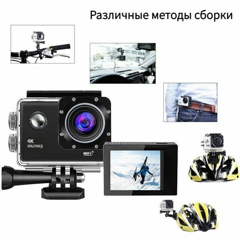 Купить Экшн-камера С Wi-Fi, 4K Профессиональная Для Велосипедного Шлема, Водонепроницаемость на Глубине 30 М, 60 кадров в секунду