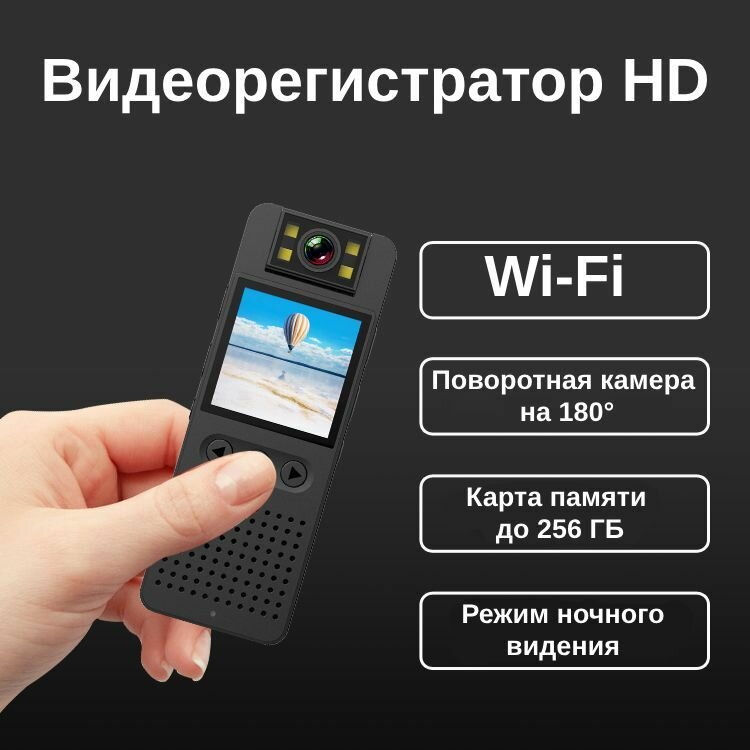 Мини видеорегистратор RIXET RX21 с Wi-Fi разрешением Full HD и со светодиодами, поворотная камера на 180 градусов интересное: