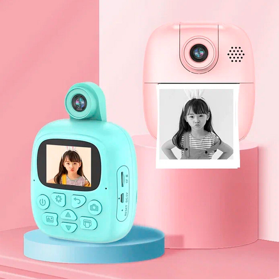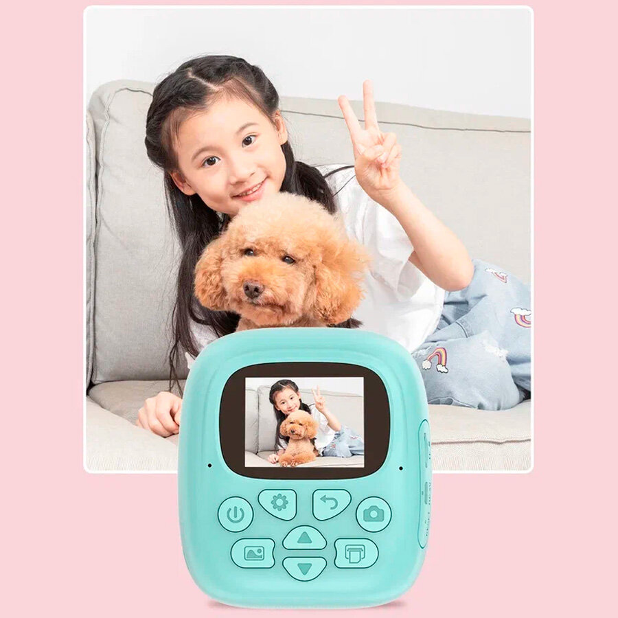 Детская камера Kid Joy Print Cam 2'' HD экран, 1 линза, угол обзора 180 градусов (P18) - бирюзовая интересное: