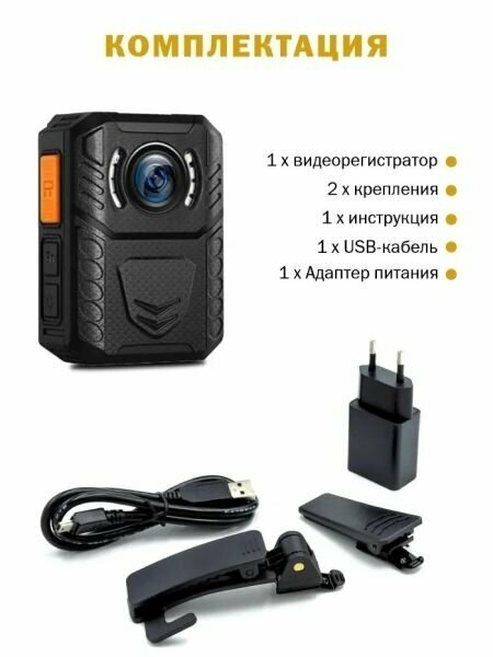 | Комплектация | Видеорегистратор - 1 шт. USB кабель - 1 шт. Адаптер питания 220В - 1 шт. Крепление к одежде (зажим, прищепка) - 2 шт. Инструкция - 1 шт. |
