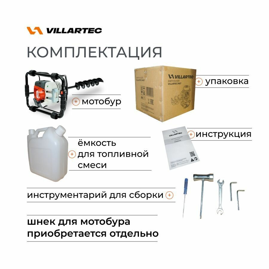 Мотобур садовый VILLARTEC D427 / бензобур, бур для рыбалки зимний, для земли и льда интересное: