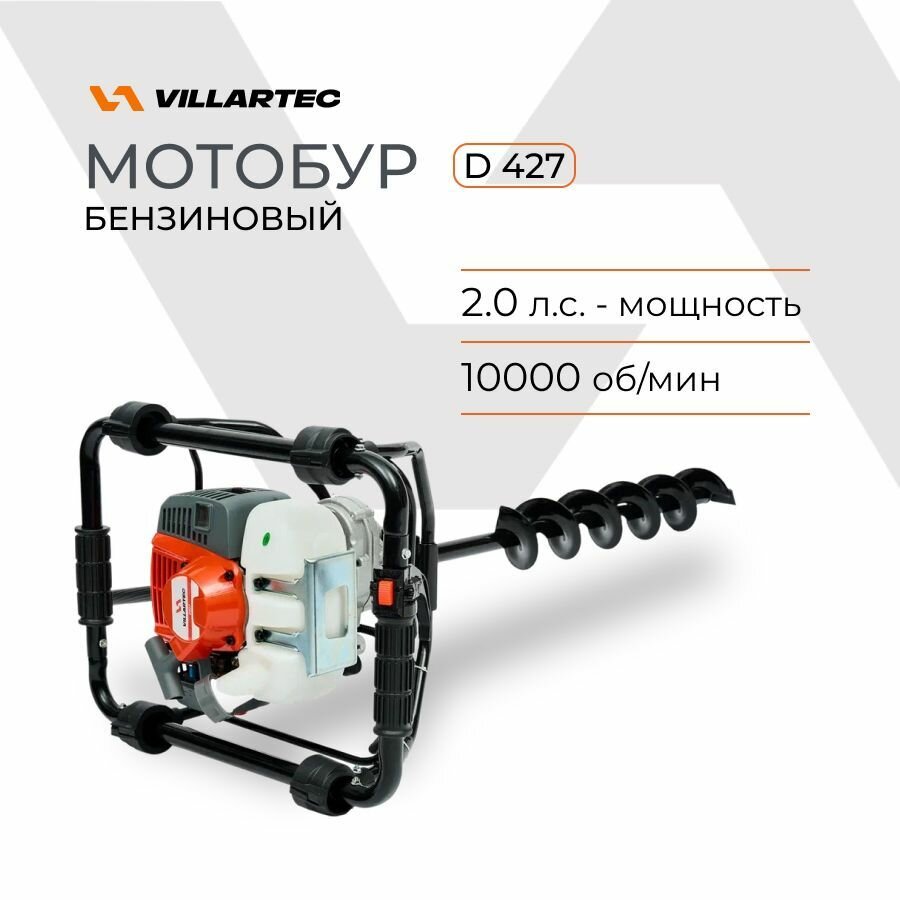 Купить Мотобур садовый VILLARTEC D427 / бензобур, бур для рыбалки зимний, для земли и льда
