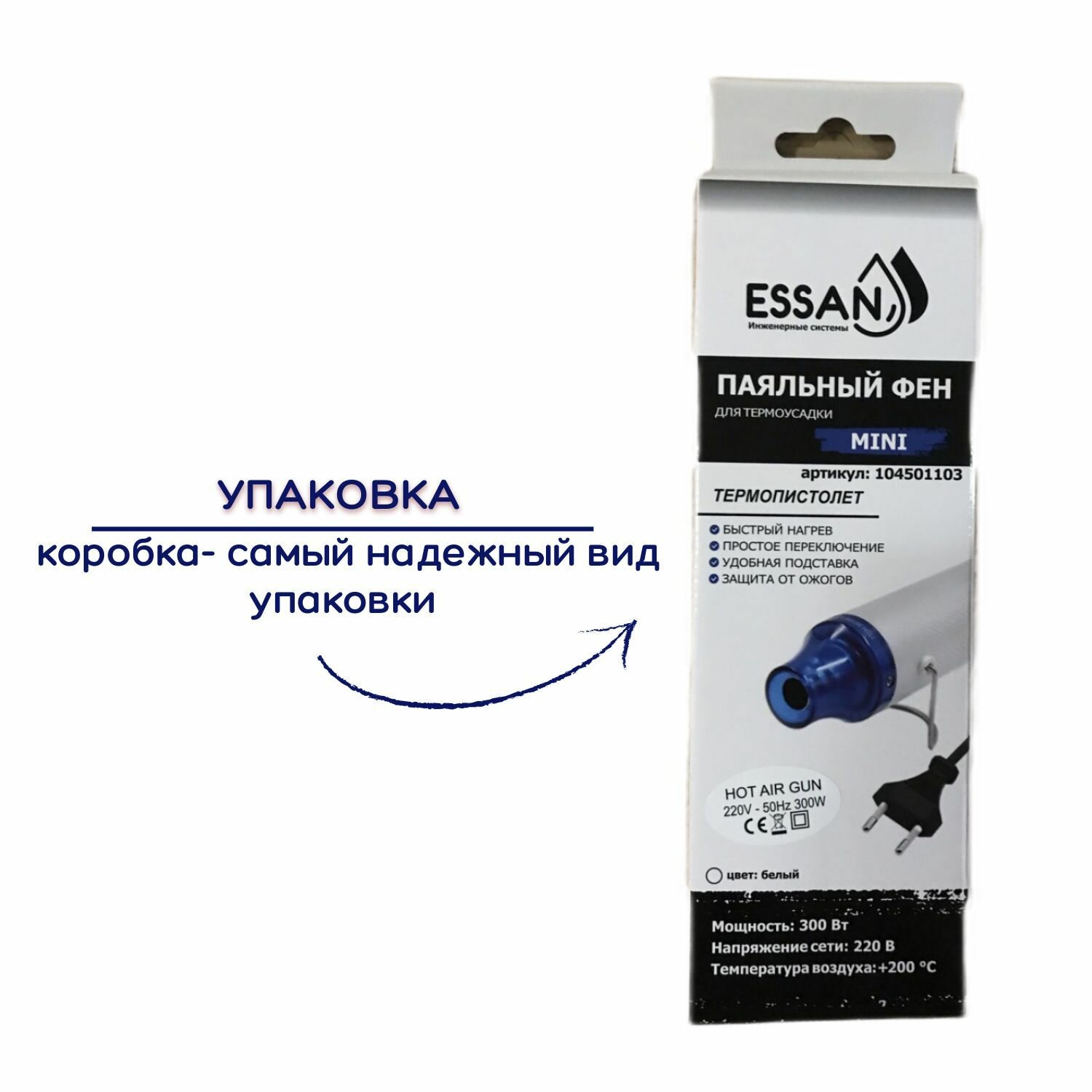 Мини паяльный фен термофен для термоусадки ESSAN 230V. 50-60Hz. 300W. Белый интересное:
