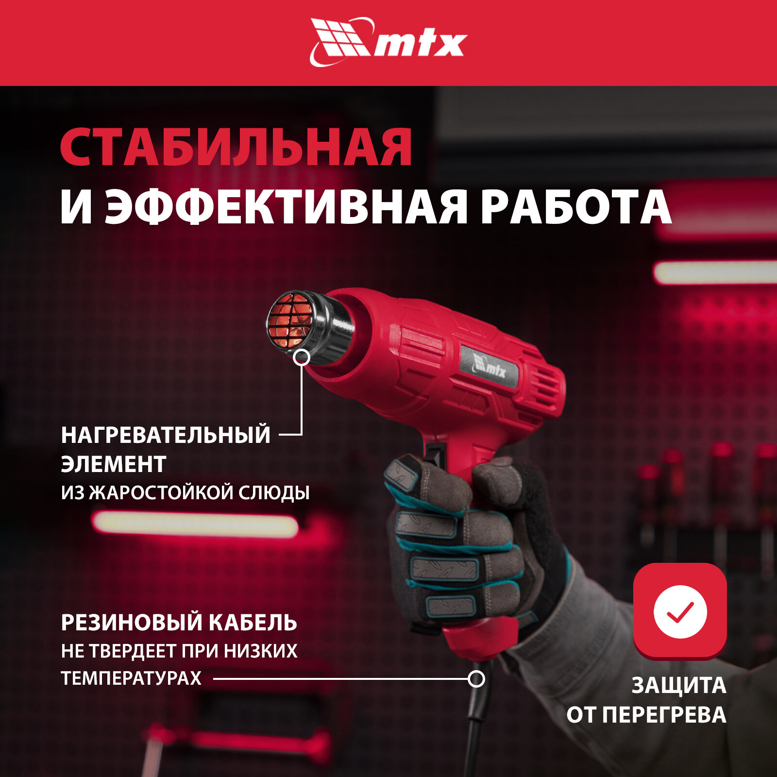 Купить Фен строительный MTX MHG-2000, 2000 Вт, 2 режима, 28081