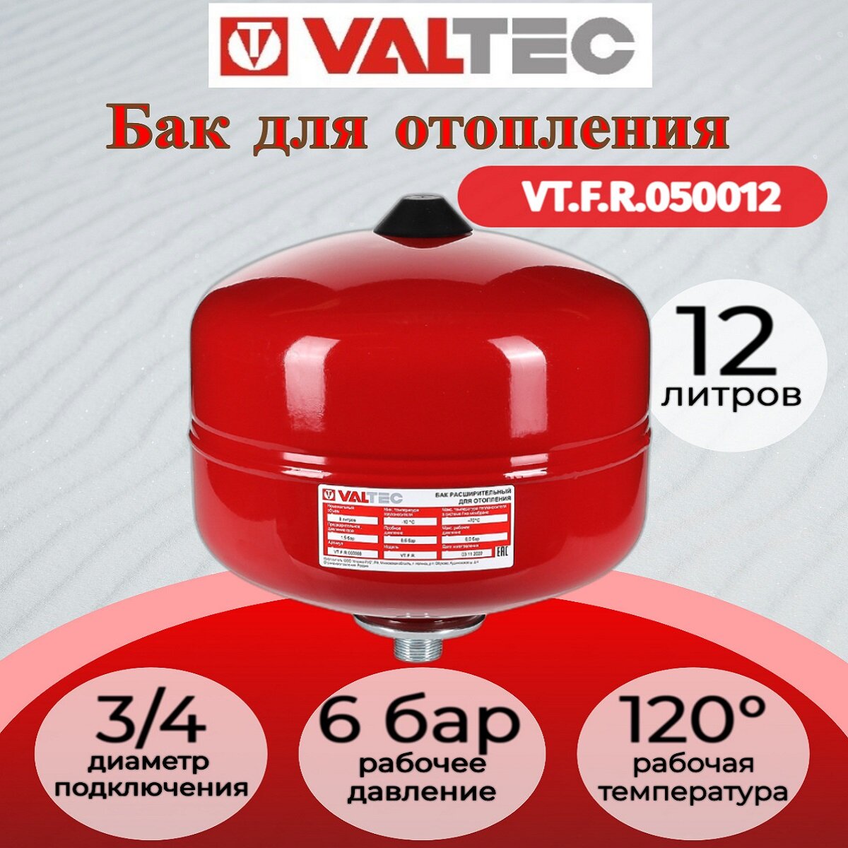 Бак мембранный для систем отопления VALTEC 12л./1,5 - 6bar (3/4") VT.F.R.050012 интересное: