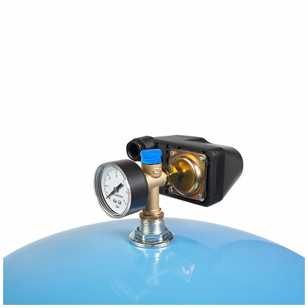 | Минусы: | Готовый комплект для контроля давления в гидробаке, удобно для установки на бак с проходной мембраной. |