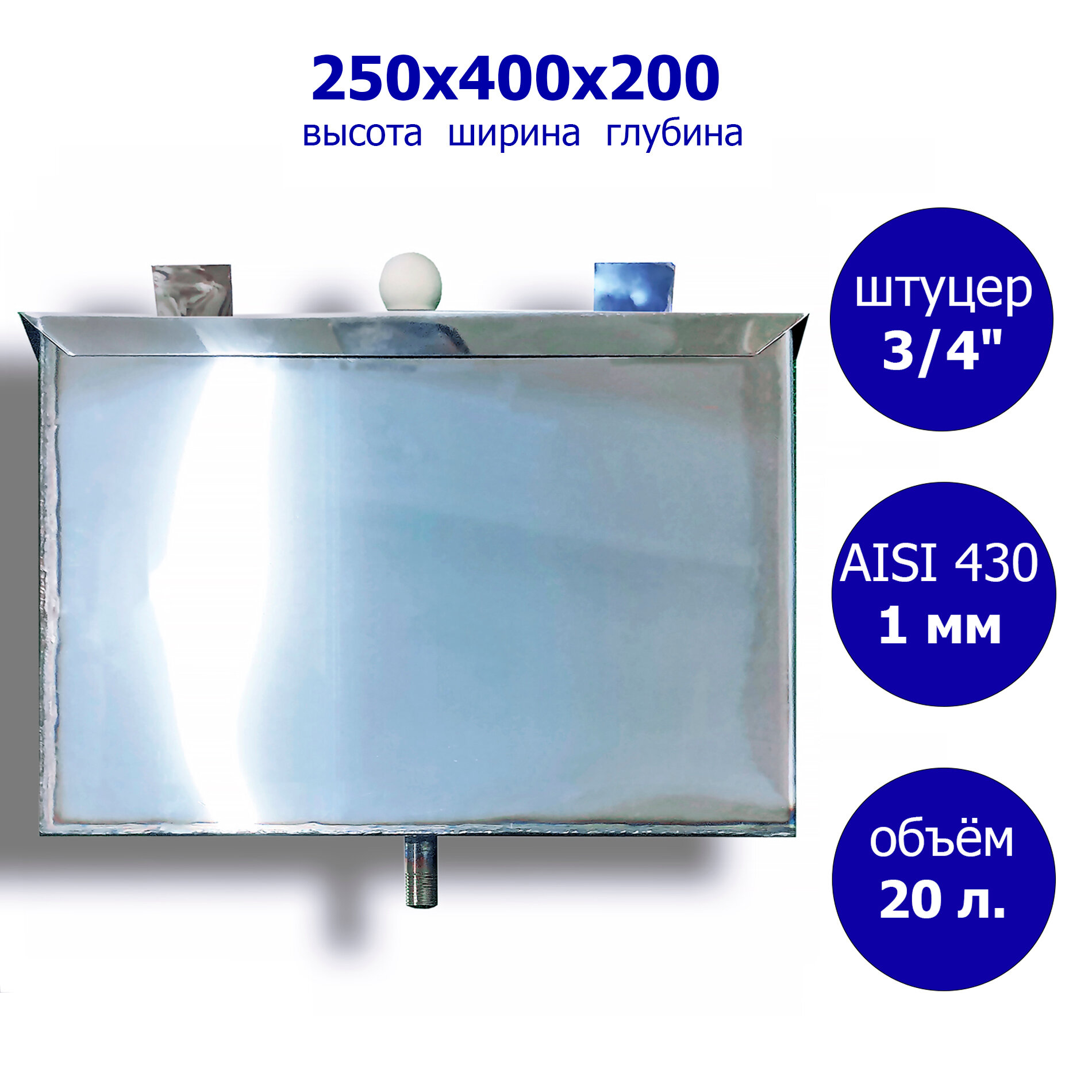 Бак расширительный открытого типа 20 л. Нержавейка 1 мм. Резьба 3/4" интересное: