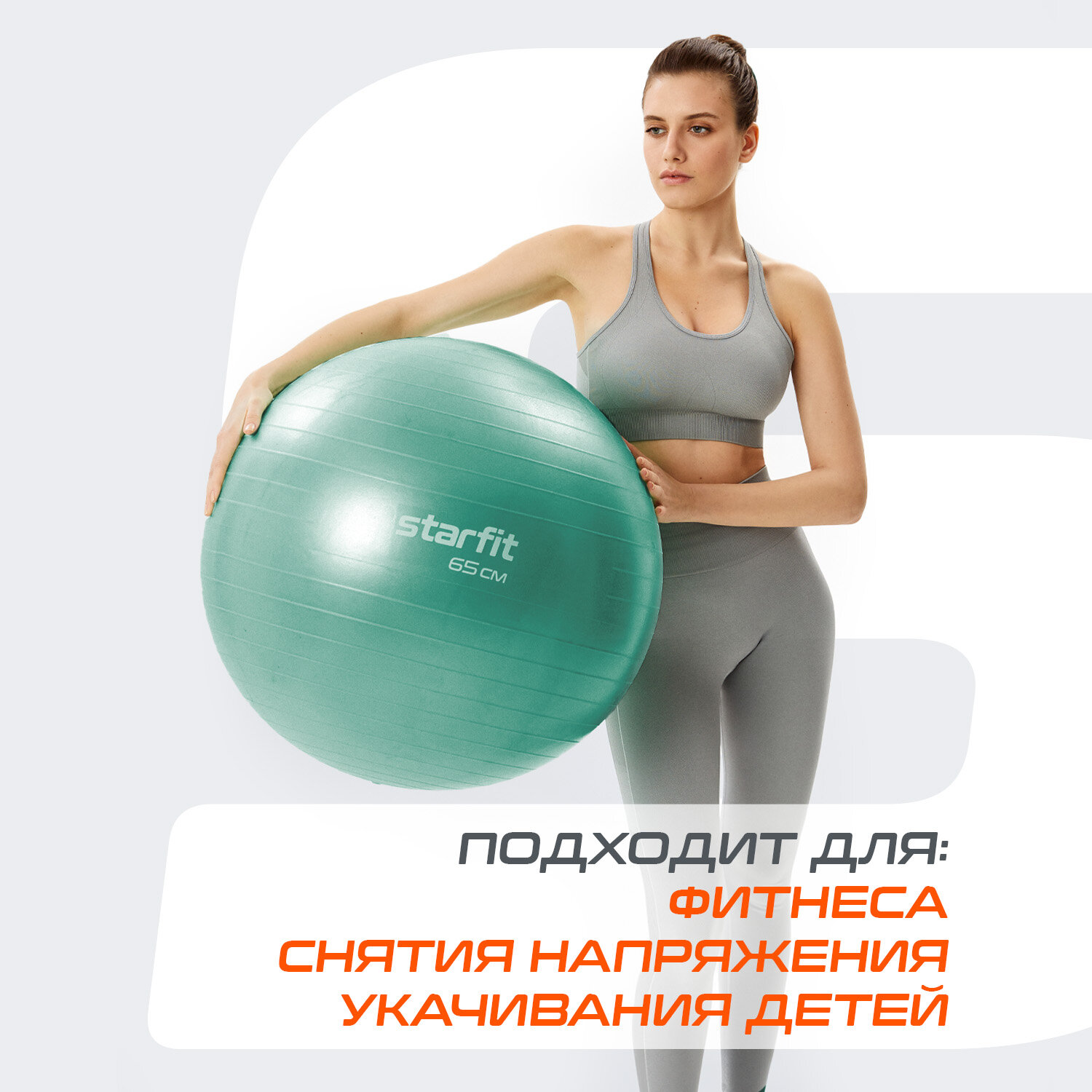 Купить Фитбол STARFIT GB-111 65 см, 1000 гр, антивзрыв, с насосом, мятный