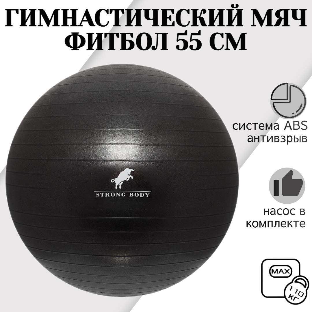 Купить Фитбол 55 см ABS антивзрыв STRONG BODY, черный, насос в комплекте (гимнастический мяч для фитнеса)