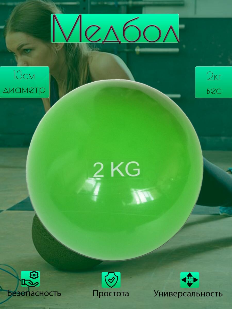 Медбол 2 кг. MB2 d-13см. салатовый, E41877 интересное: