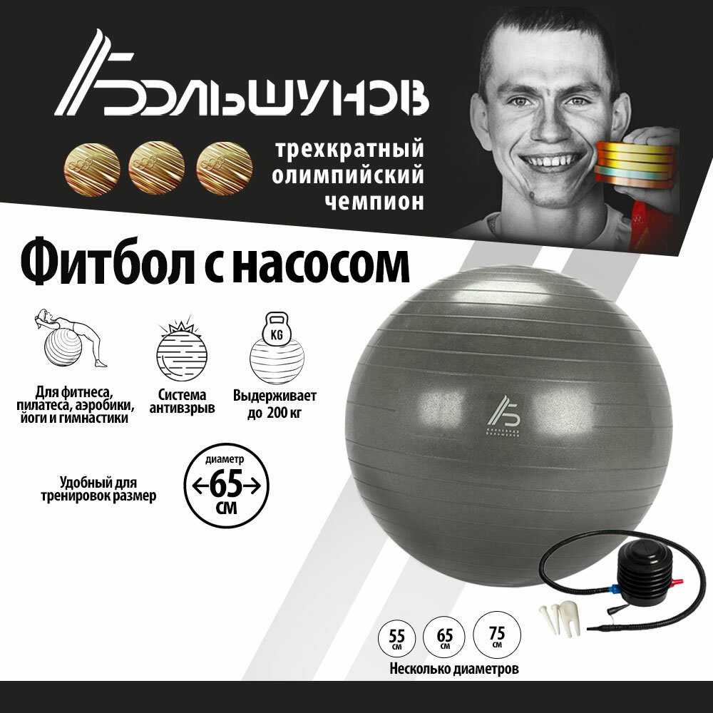 Фитбол Александр Большунов, диаметр 65 см, серый интересное: