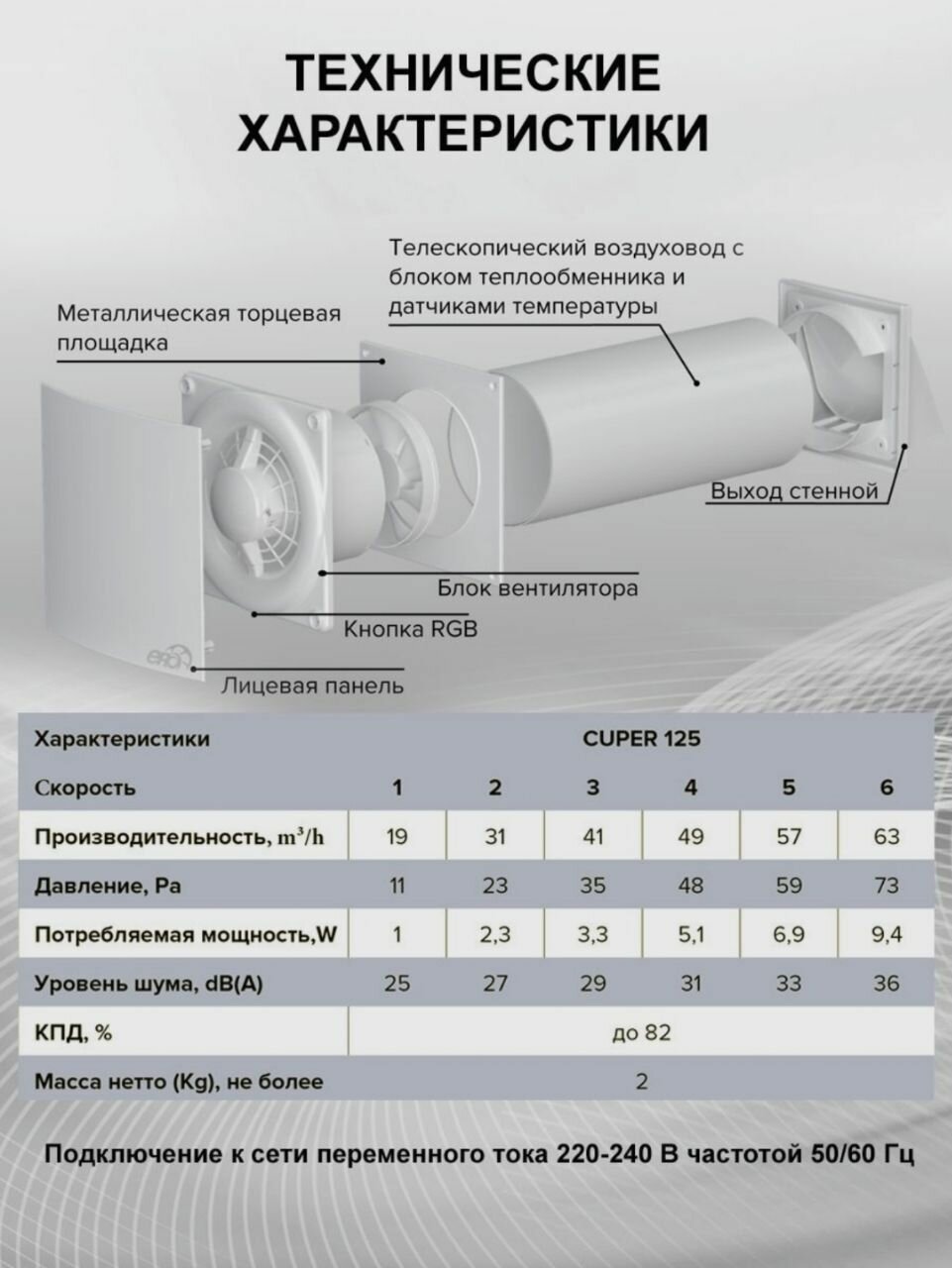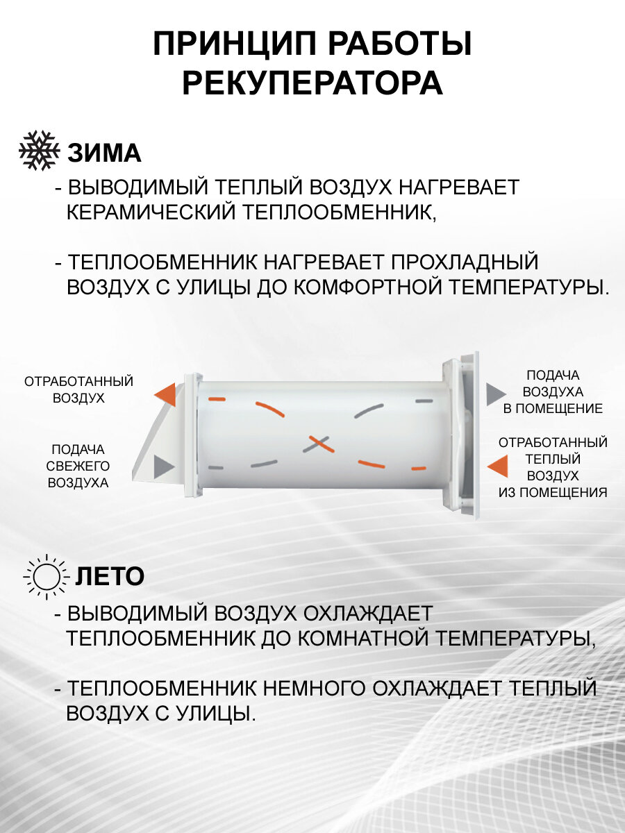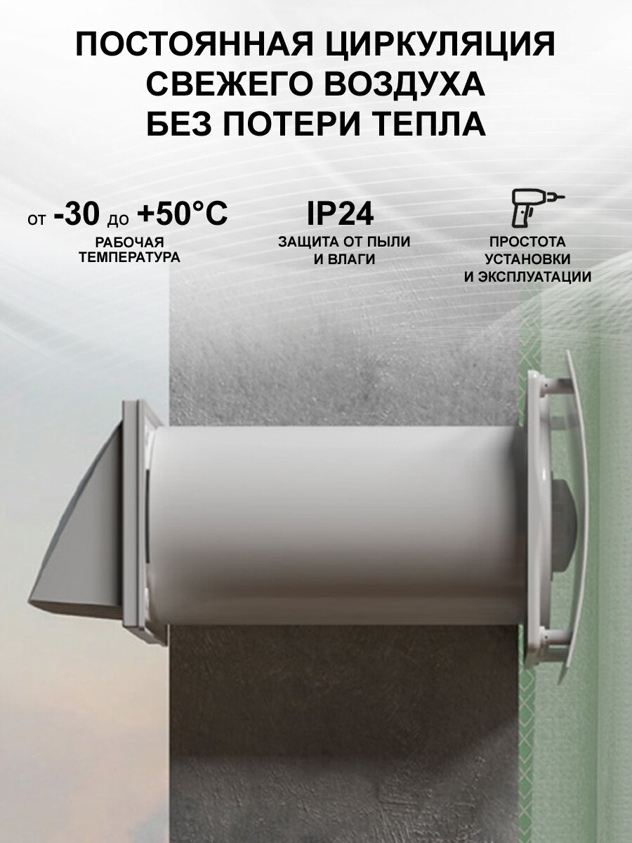 Рекуператор-проветриватель CUPER 125, D125 мм, приточно-вытяжной, 6 скоростей