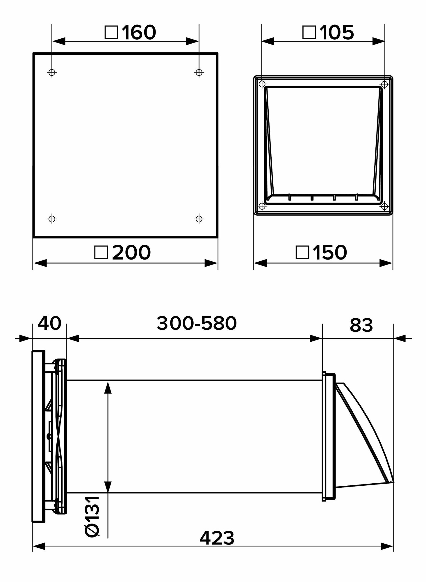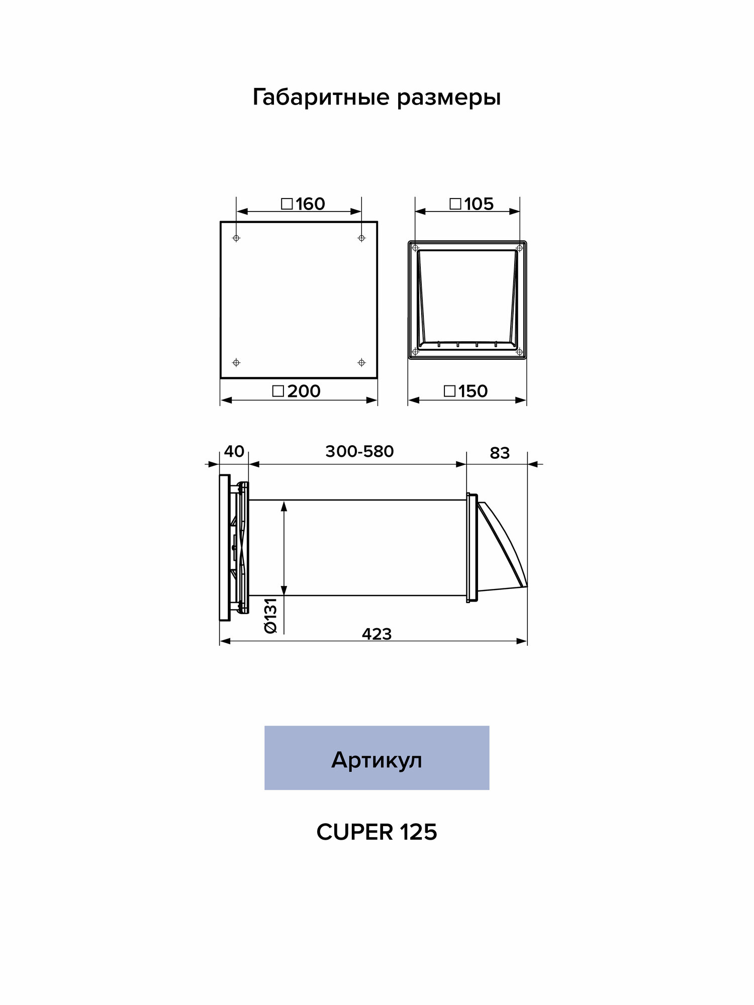 | Габариты (ШхВхД) | 200x200x423 мм |