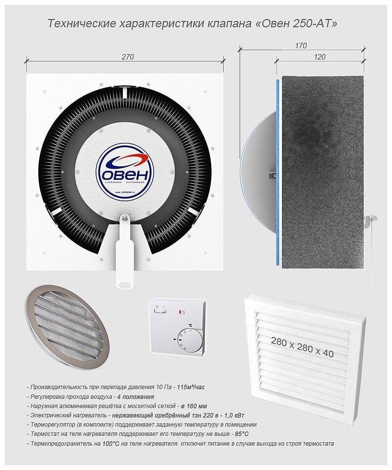 Клапан приточной вентиляции «Овен 250-АТ» (115 м³/час) с электрическим нагревателем интересное: