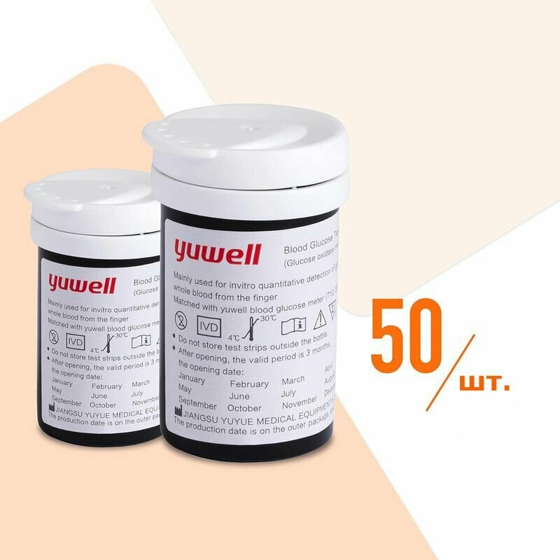 Тест-полоски и ланцеты Yuwell для измерения уровня глюкозы в крови (тест-полоски только для Yuwell 582), 50 шт. интересное: