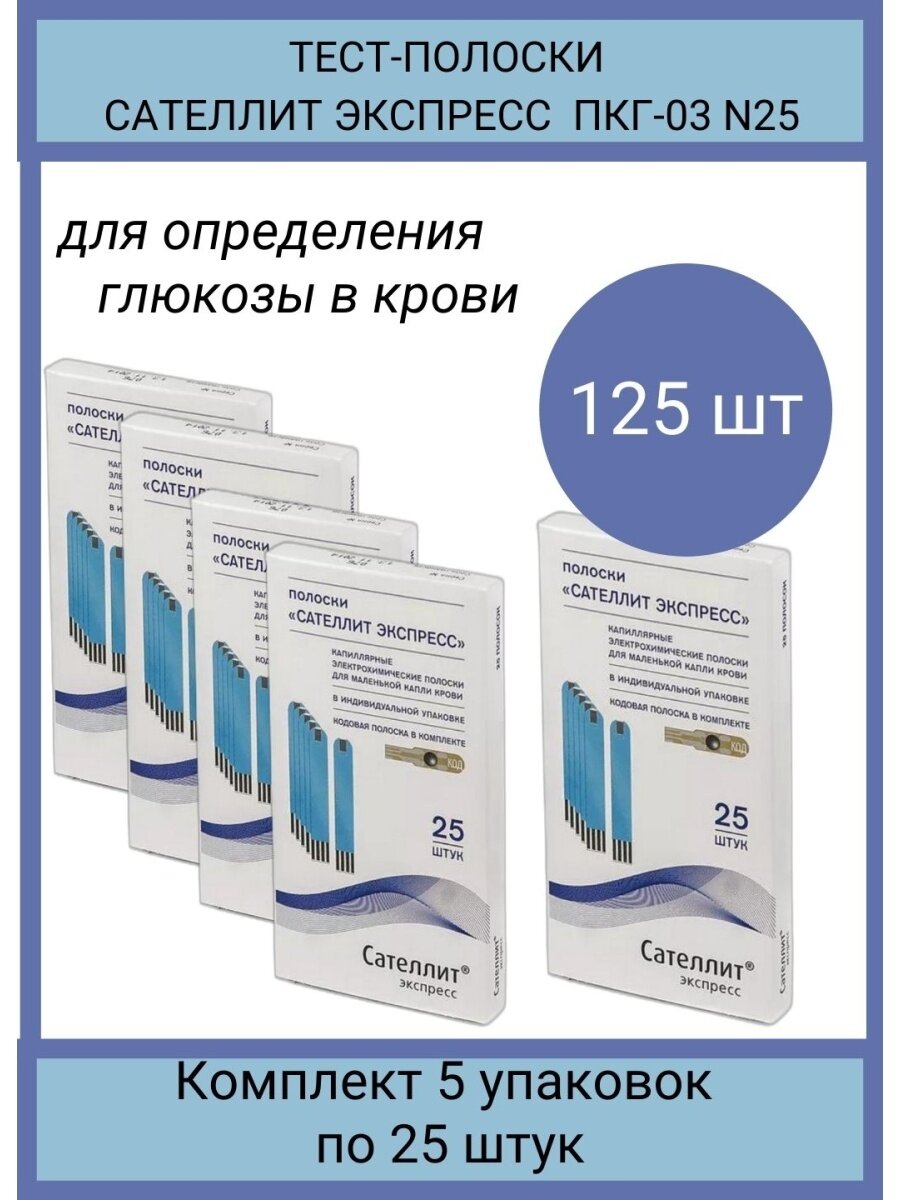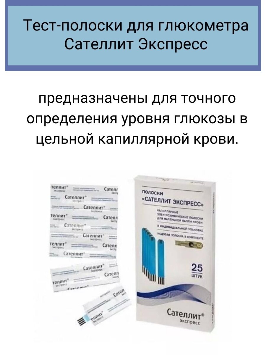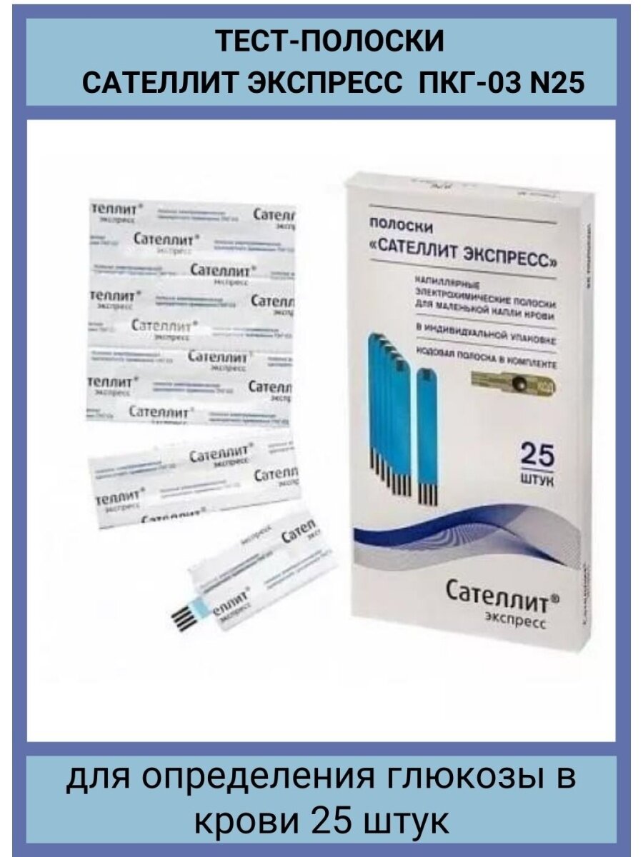 Тест-полоски для глюкометра Сателлит Экспресс 25 штук в упаковке для определения глюкозы в крови интересное: