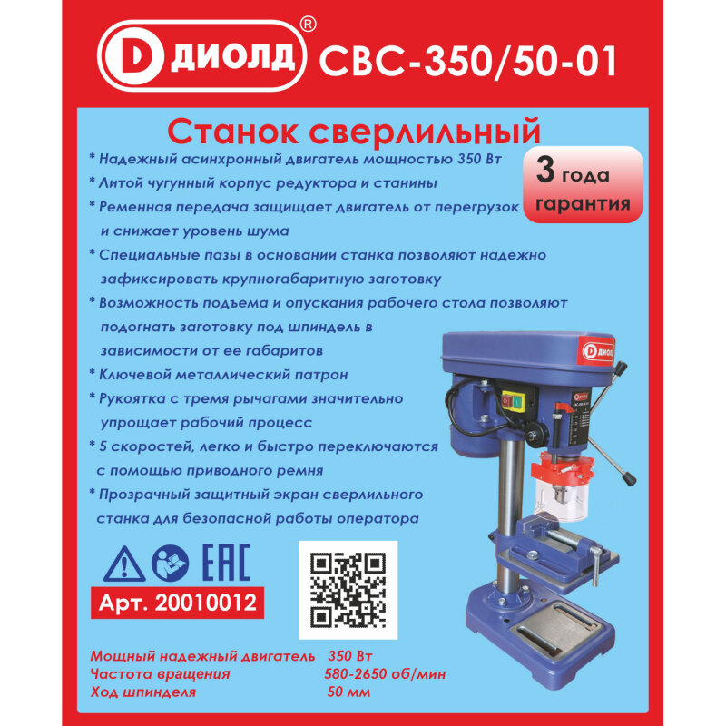 Сверлильный станок Диолд СВС-350/50-01 (20010012) интересное: