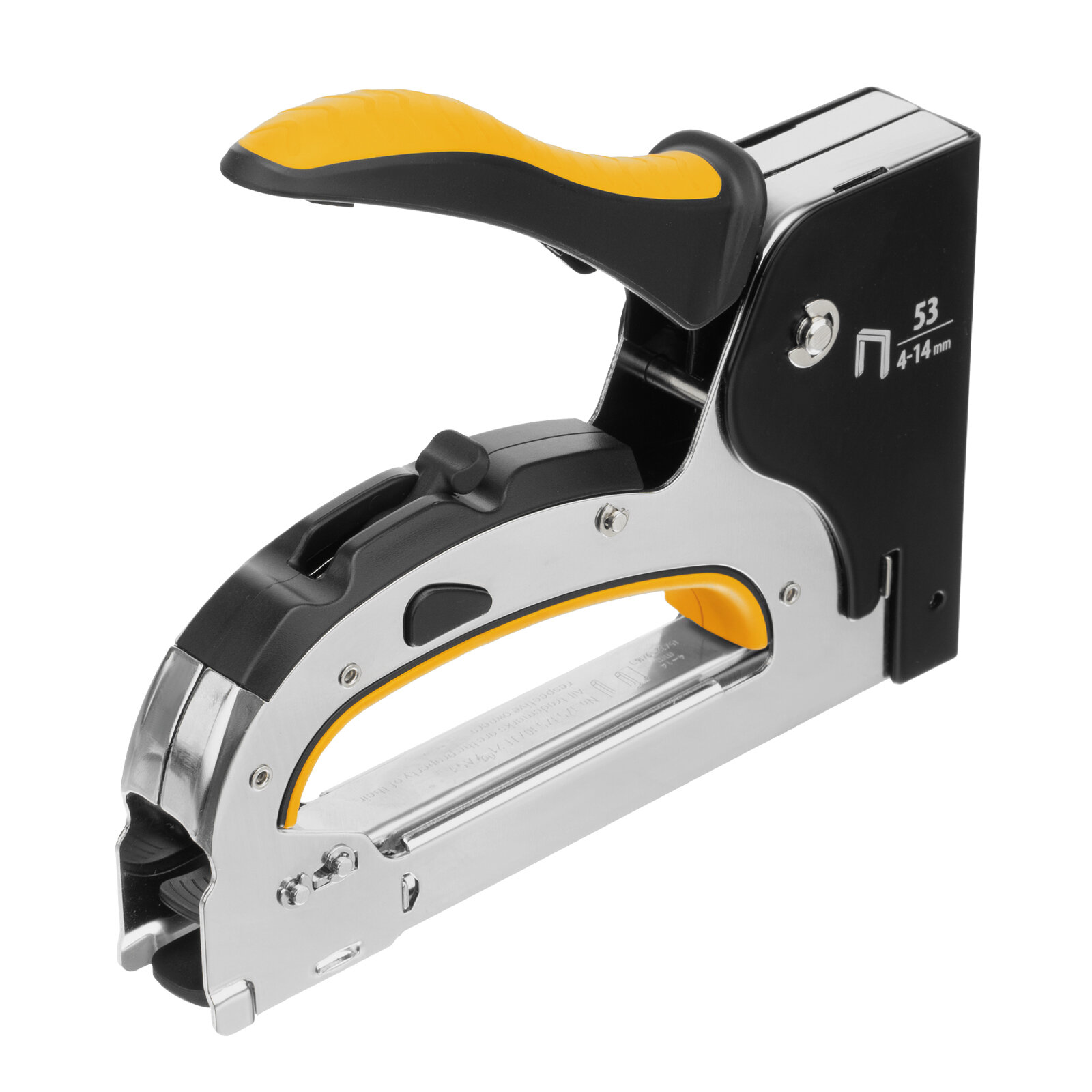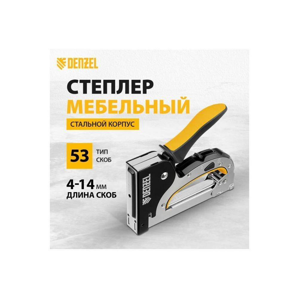 Степлер мебельный, стальной корпус, быстрая загрузка, регул. силы удара, тип 53, 4-14 мм// Denzel