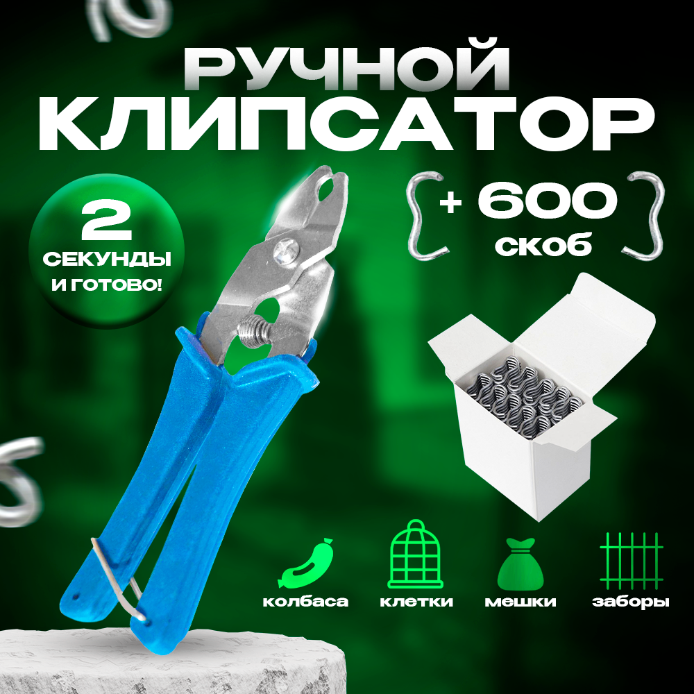 Клипсатор / скобообжим для скрепления сетки, забора, клеток, обвязки колбас, мешков с упаковкой скоб 600шт интересное: