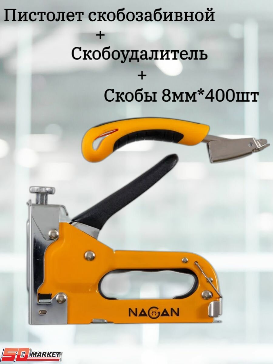 Купить Пистолет скобозабивной + скобоудалитель+скобы 8мм*400шт,