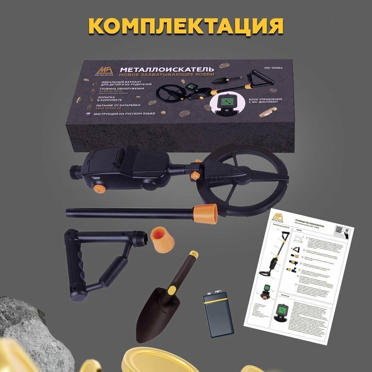 Детский грунтовый для поиска ручной с водонепроницаемой катушкой для монет золота серебра MD-1008A интересное: