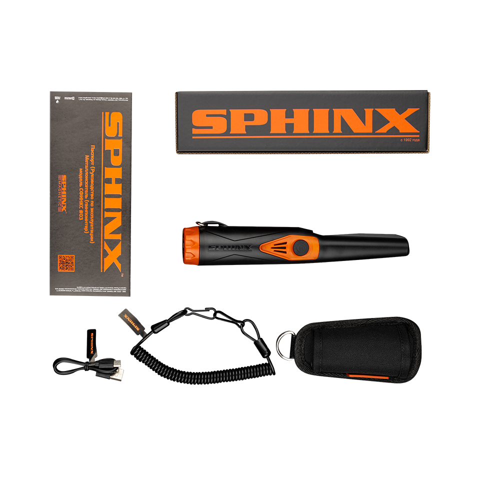 | Комплектация | Комплектация Пинпоинтер Sphinx 03 Кобура с креплением на ремень Magnetic Кобура с крепление на бедро Magnetic Защитный колпачок на носик Кабель USB-A/ type-C, Тренчик Паспорт/инструкция |
