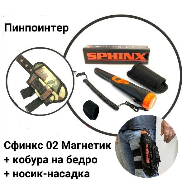 Купить Пинпоинтер Сфинкс (Sphinx) 02 Magnetic чёрный c носиком-насадкой c набедренной кобурой Magnetic (камуфляж)
