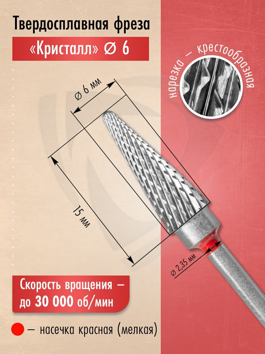 Кристалл, Твердосплавная фреза 23160 (конус), мелкая, D6, L15