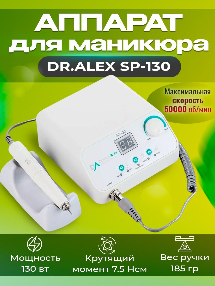 Dr. Alex Аппарат для маникюра и педикюра 50 тыс. об, 130 Вт, 32В, SP-130 Белый интересное: