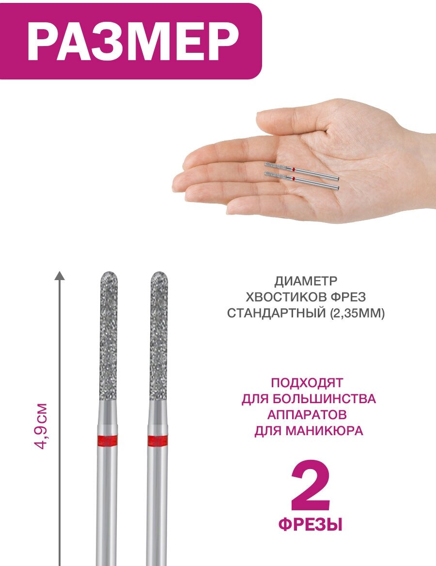 Купить Фрезы алмазные для маникюра и педикюра цилиндр 2шт 2,5мм набор для профессионального маникюрного аппарата, дизайна, полировки ногтей, кожи и кутикулы