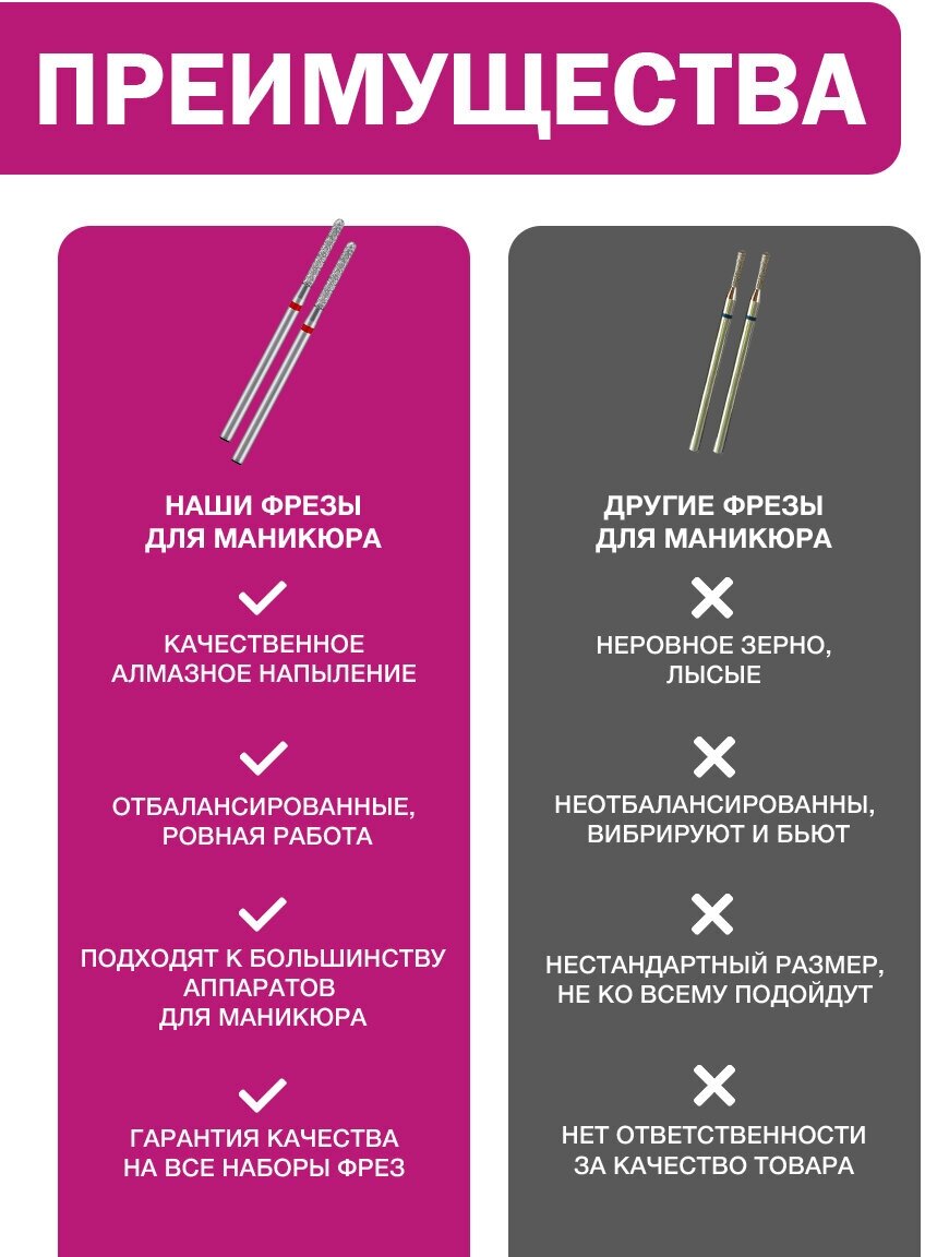 Фрезы алмазные для маникюра и педикюра цилиндр 5шт 2,5мм набор для профессионального маникюрного аппарата, дизайна, полировки ногтей, кожи и кутикулы