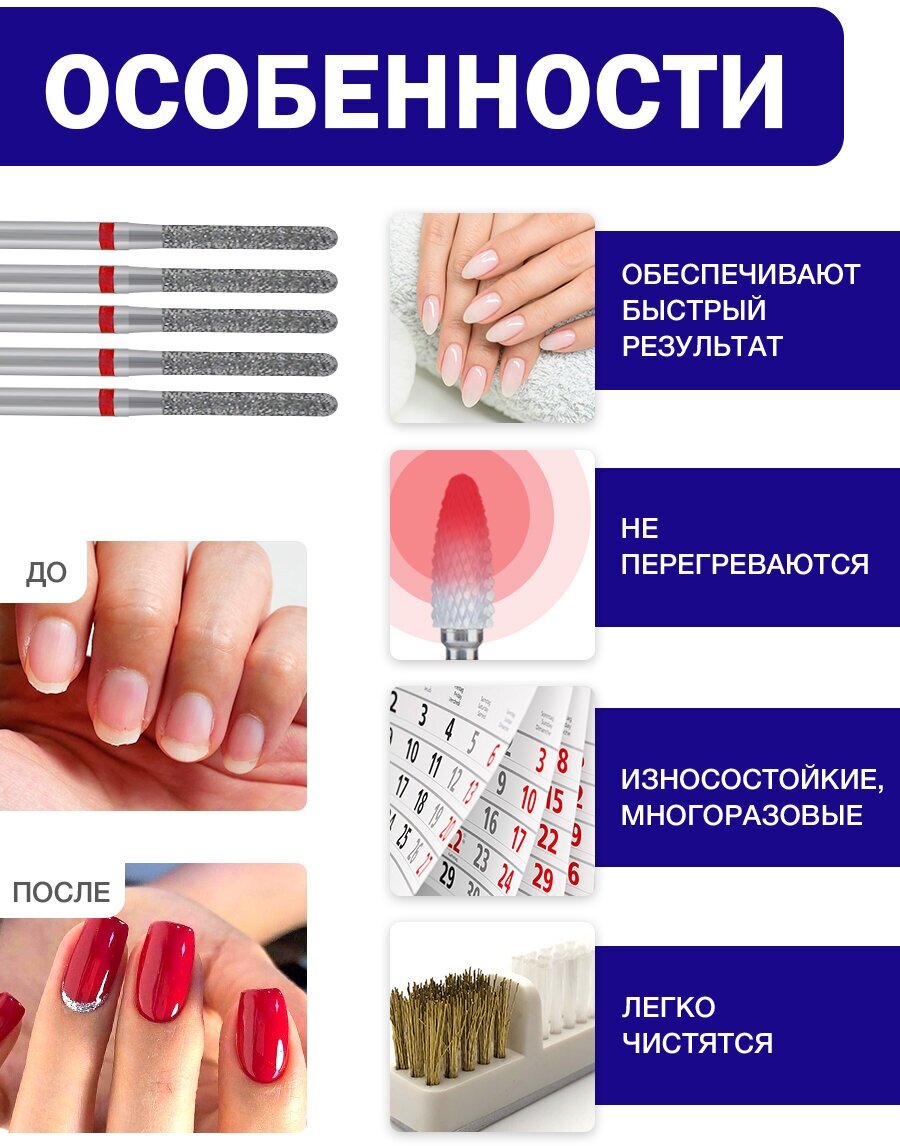 СохранитьФрезы алмазные для маникюра и педикюра цилиндр 5шт 2,5мм набор для профессионального маникюрного аппарата, дизайна, полировки ногтей, кожи и кутикулы интересное: