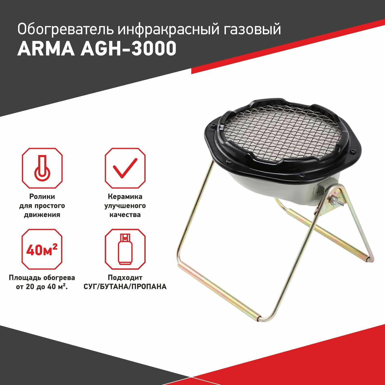 Обогреватель инфракрасный газовый ARMA AGH-3000, 3,0 кВт интересное: