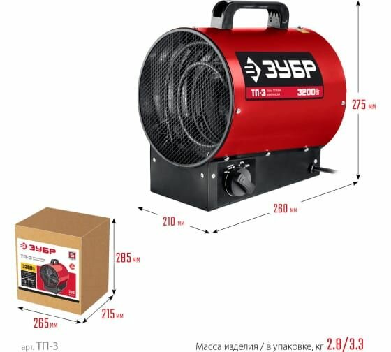 Ниже Вы можете прочитать отзывы на Электрическая тепловая пушка ЗУБР 3.2 кВт ТП-3, ознакомится с подробными характеристиками, посмотреть интересные обзоры и фотографии на Электрическая тепловая пушка ЗУБР 3.2 кВт ТП-3.