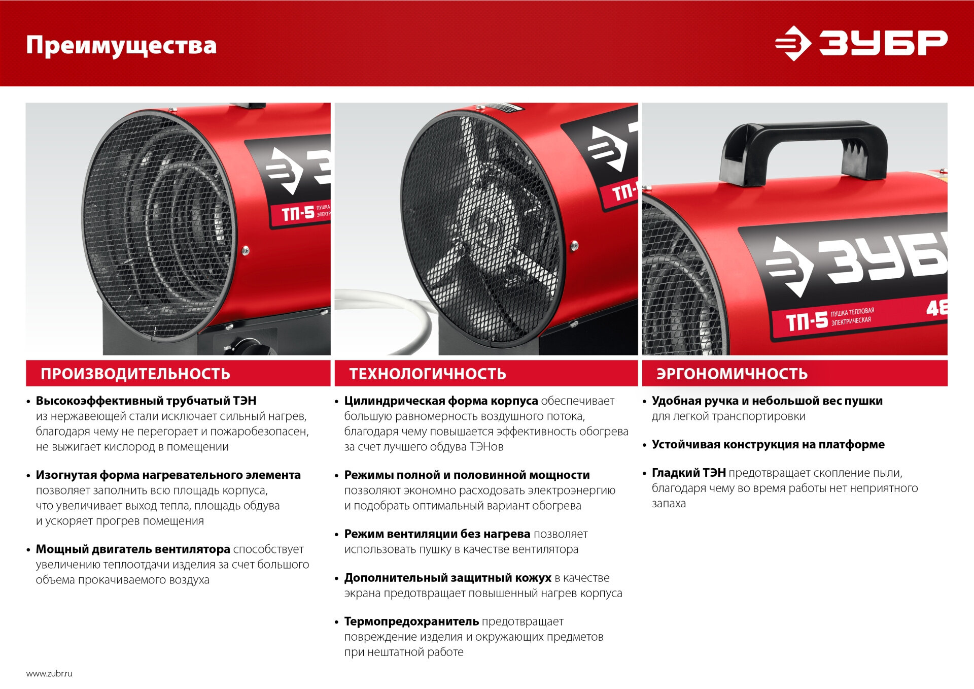 Тепловая пушка электрическая Зубр Мастер ТП-3 3200Вт красный