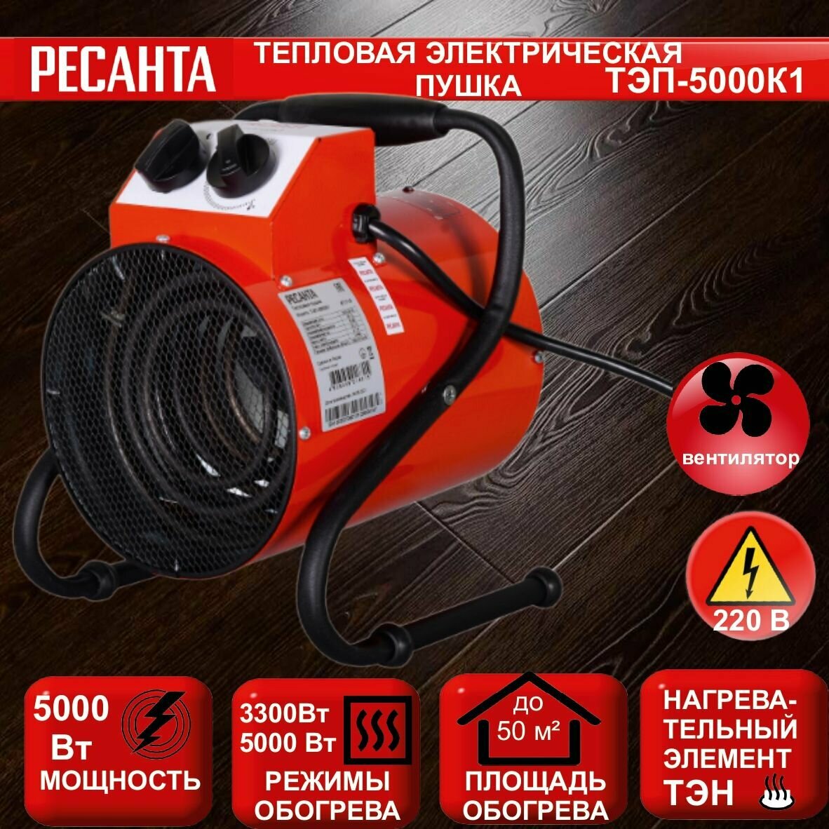 Тепловая электрическая пушка ТЭП-5000К1 (круглая) Ресанта, интересное: