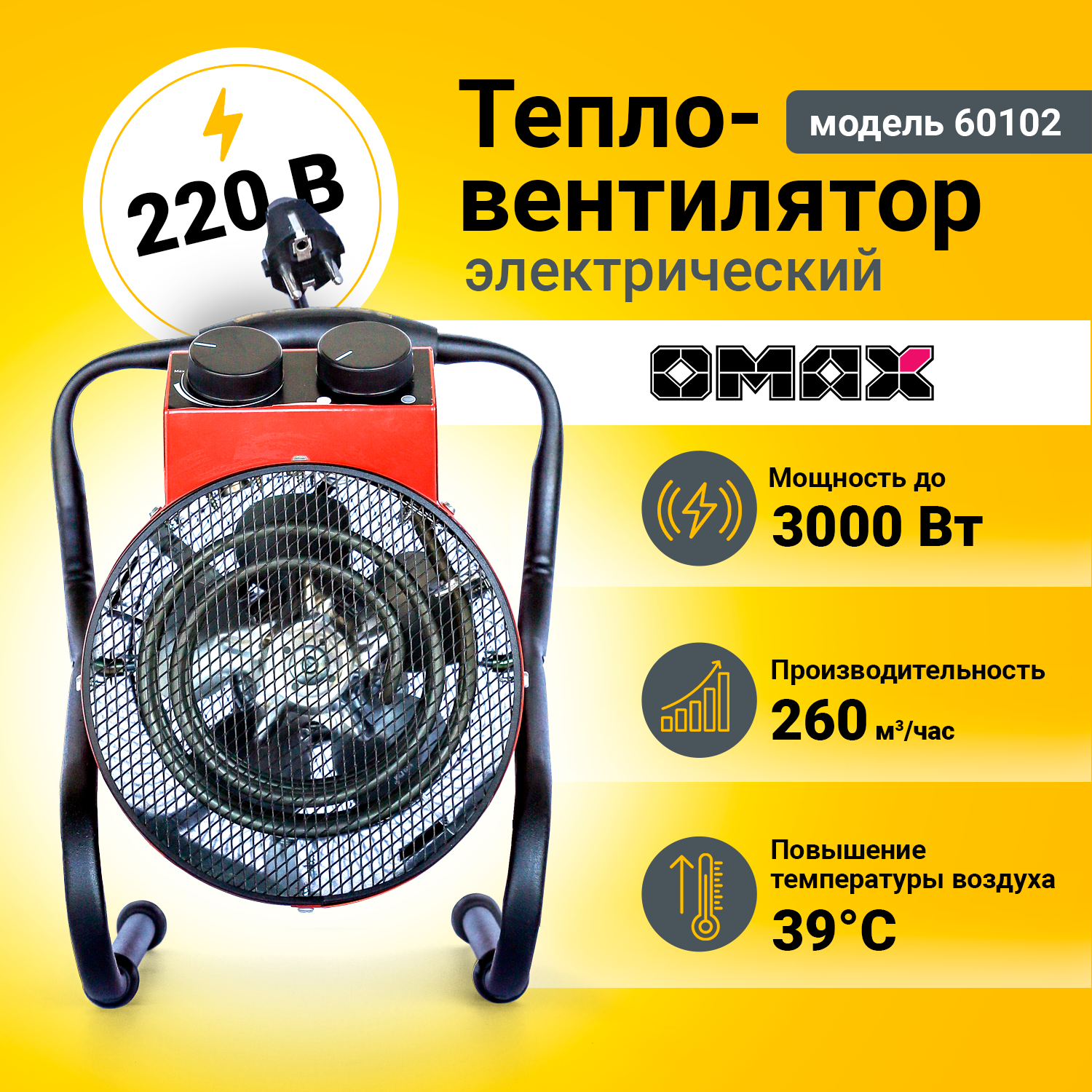 Ниже Вы можете прочитать отзывы на Электрическая тепловая пушка "OMAX" 3 кВт, ознакомится с подробными характеристиками, посмотреть интересные обзоры и фотографии на Электрическая тепловая пушка "OMAX" 3 кВт.